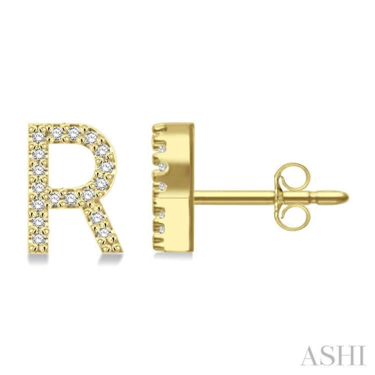 1/10 Ctw Initial 'R' Round Cut Diamond Earrings in 10K Yellow Gold