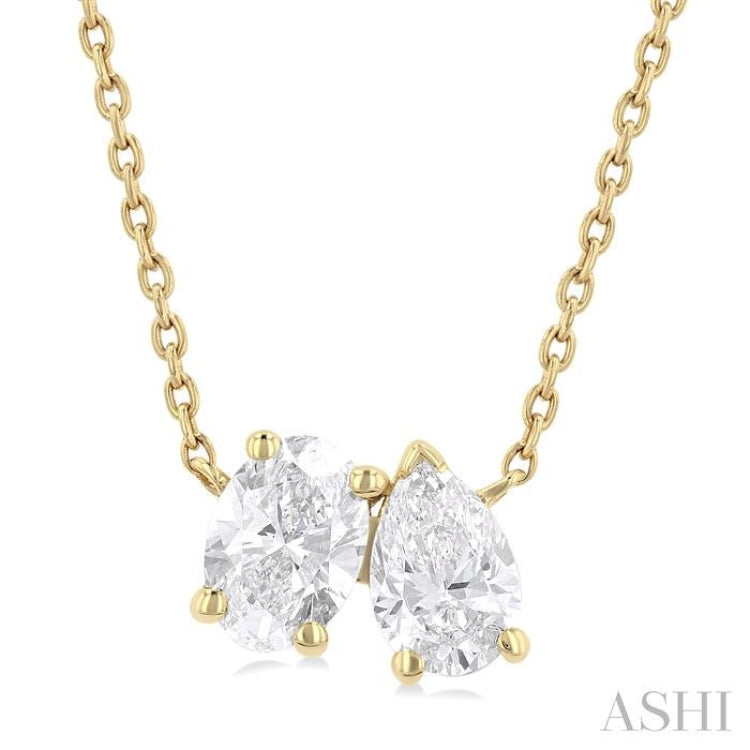 3/4 Ctw Toi Et Moi Oval and Pear Cut Diamond Pendant With Chain in 14K Yellow Gold