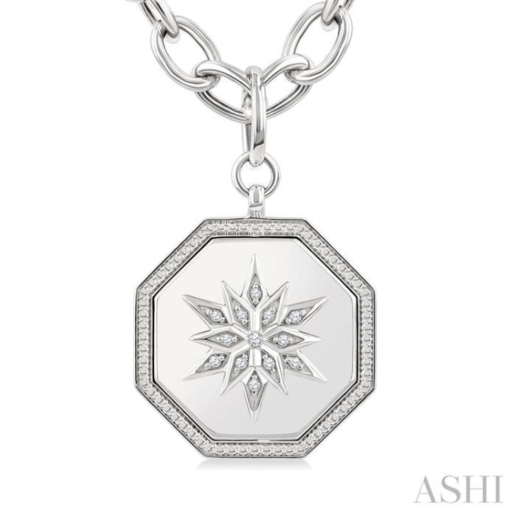 1/20 Ctw Octagon Shape medallion Single Cut Diamond Star Pendant With Chain in Sterling Silver