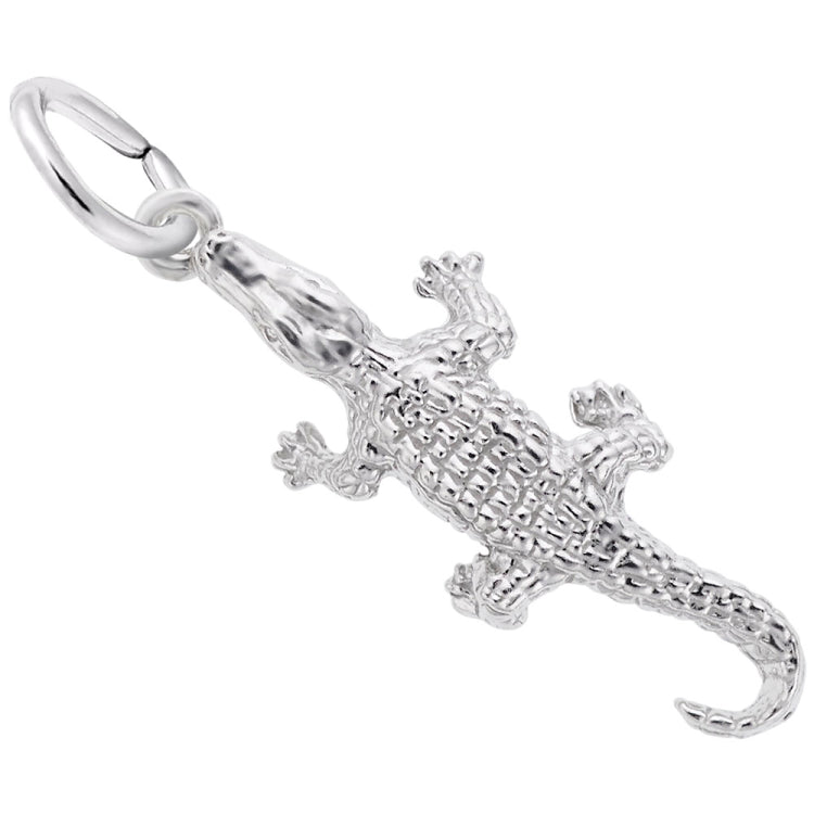 Take a chomp out of your next charm with this Alligator Charm. Showoff your favorite reptile on your classic bracelet. Available in silver and gold