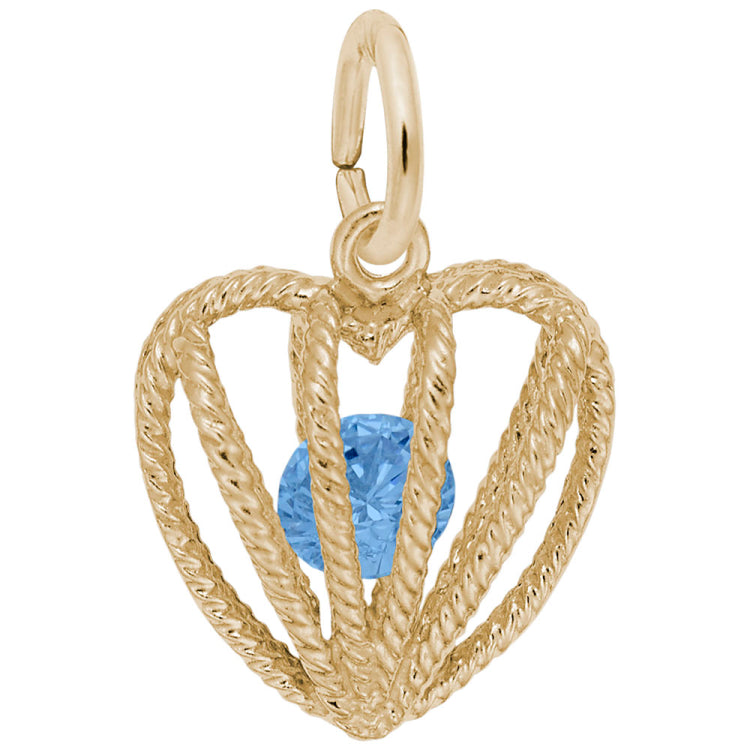 The Embraced With Love Stone Charm cages in the birth month's colored stone. This beautiful heart charm is full of love for the month of December. Available in silver and gold.