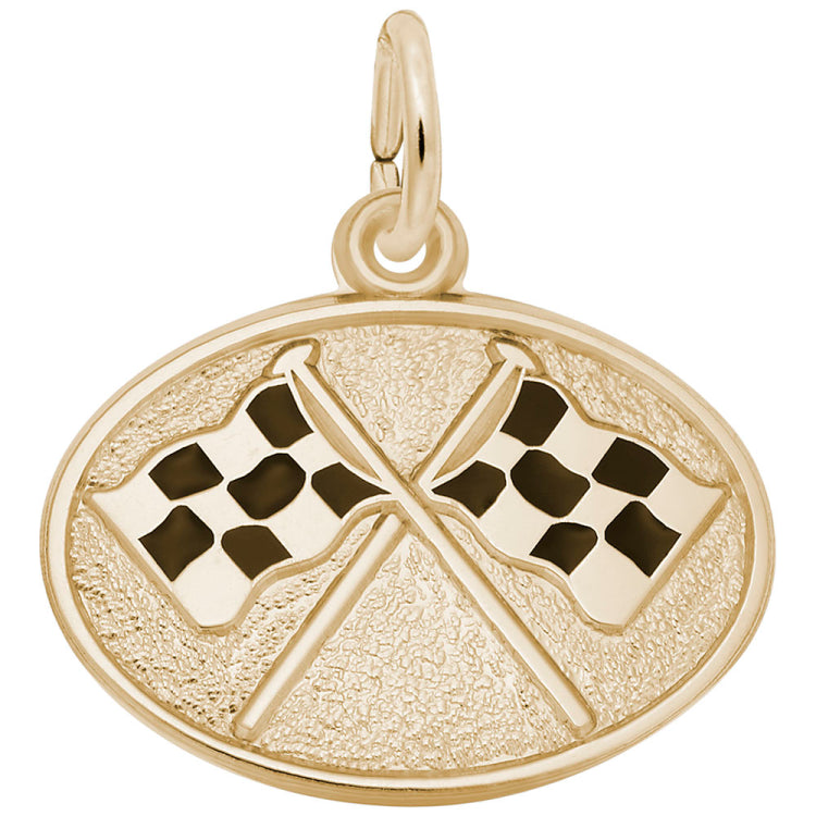 Hit the black top or dirt with this Racing Flags Oval Disc Charm. This item recognizes your need for speed. Available in silver and gold.