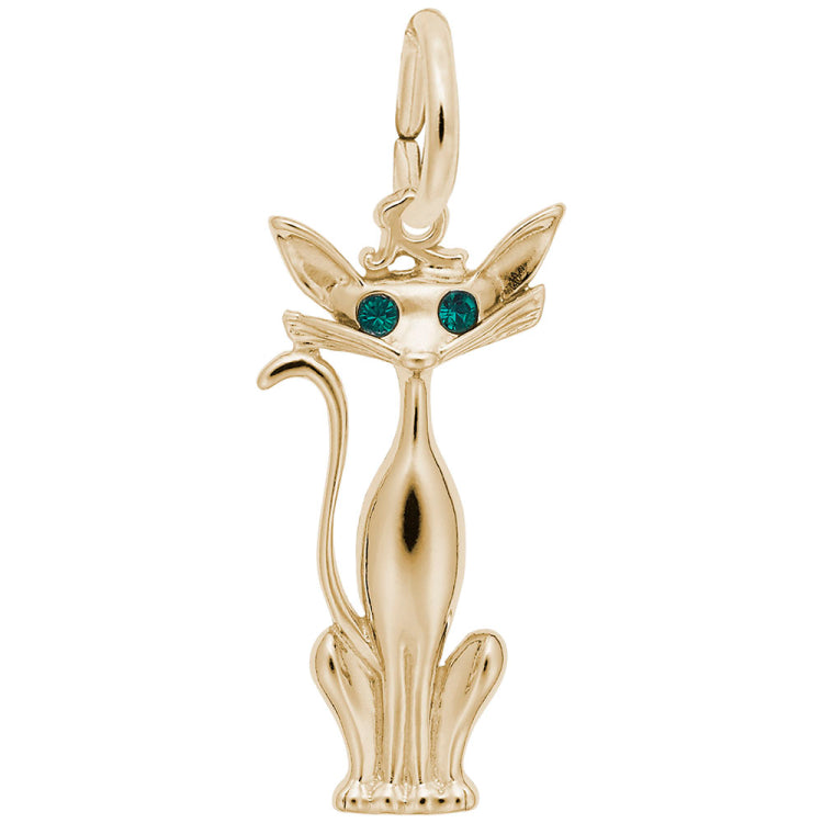 Keep the affection of your pet with you all day with the stylized Siamese Cat Charm. This cat breed charm offers sleek detail. Available in silver and gold.