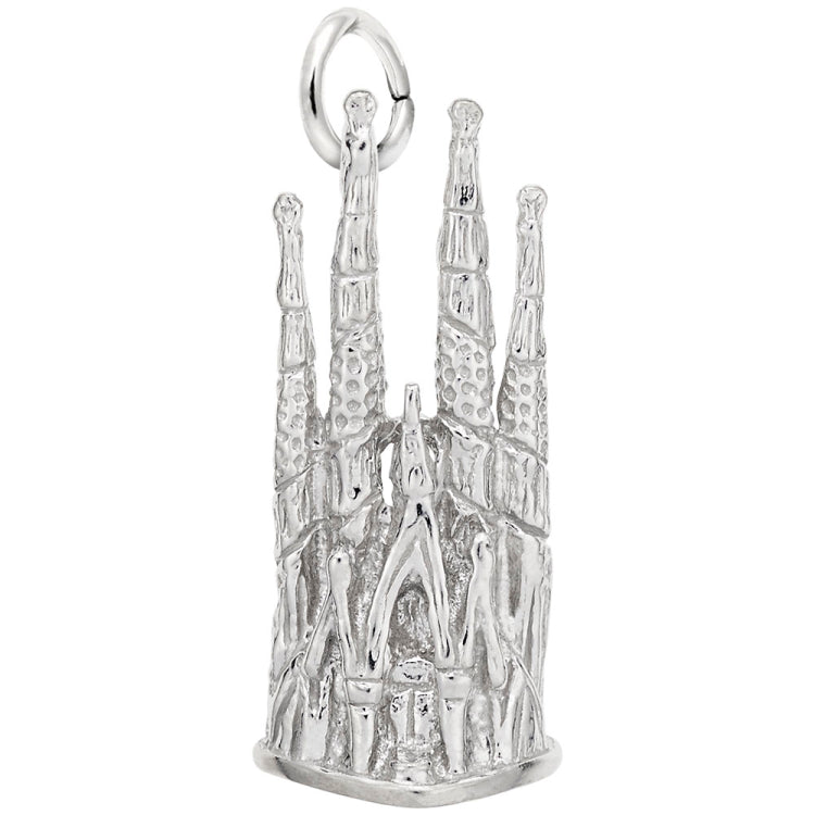 The beauty and detail of this Roman Catholic Church is displayed in the La Sagrada Familia Charm. This 3D jewelry piece representing Barcelona, Spain is available in silver and gold.