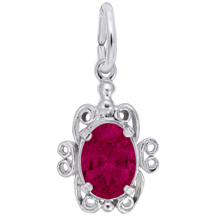 The Filigree Stone Charm adds a colorful vintage flair to any charm bracelet. Wear this on any Classic Bracelet to remind your of important July Dates. Available in silver and gold.