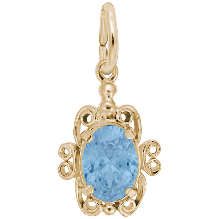 The Filigree Stone Charm adds a colorful vintage flair to any charm bracelet. Wear this on any Classic Bracelet to remind your of important March Dates. Available in silver and gold.