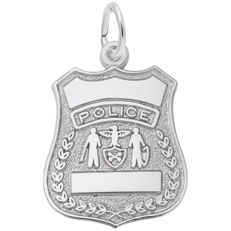 Be a hero with the Police Badge Charm. Engrave on front and back to customize for the law enforcement officer in your life. Available in silver and gold.