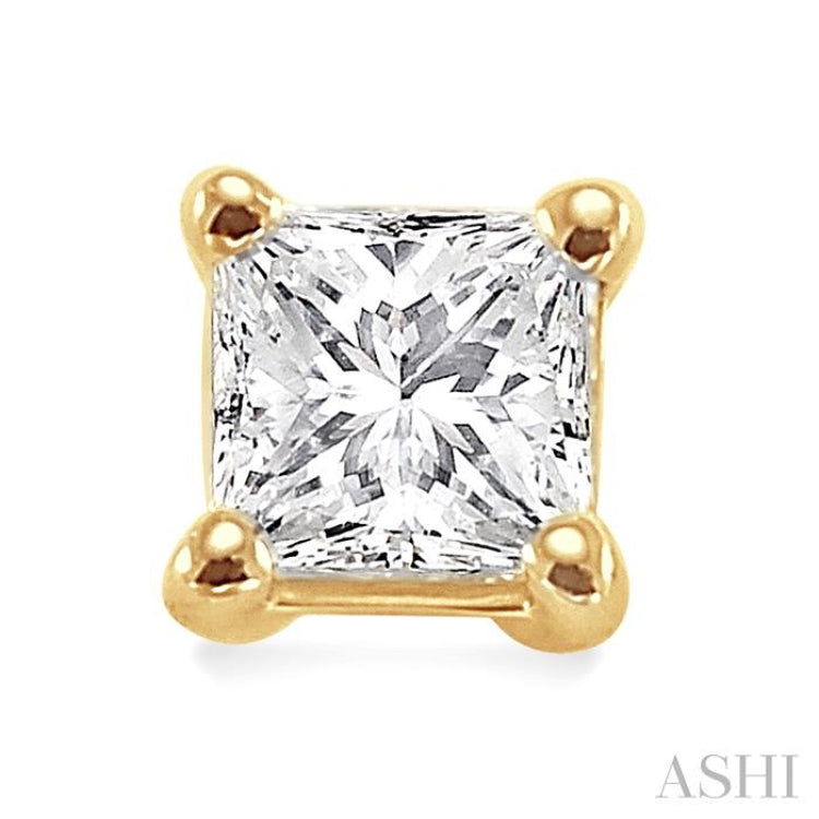 This superlative pair of Diamond Stud Earrings is just perfect to add elegance and charm to her beautiful countenance. These fascinating stud earrings are set with two perfectly matched 1/2 Ct princess cut diamonds in radiant 14 karat yellow gold. Each earring is secured with screw-back earring back for added security. Total diamond weight is 1 Ctw.